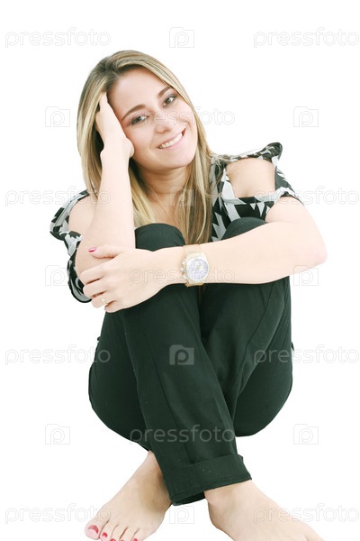 Портрет счастливой молодой девушки на белом фоне
