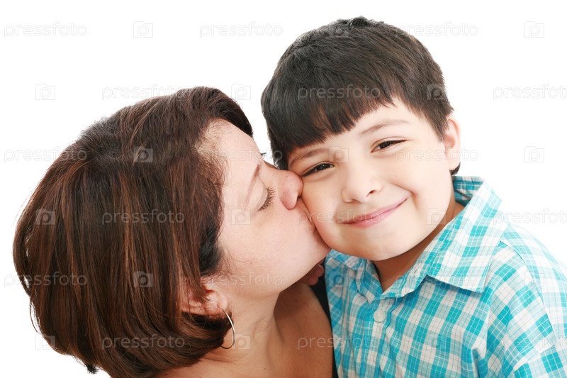 Мать целует сына