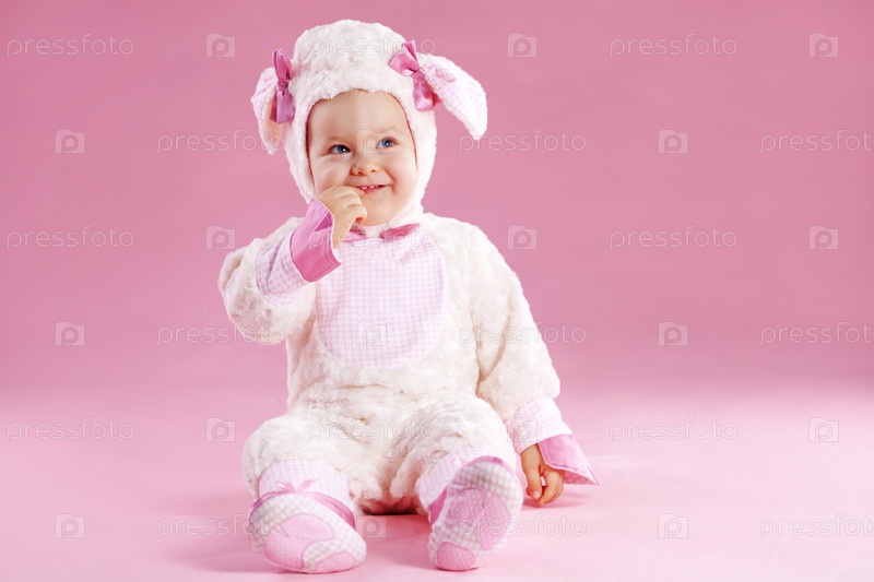 Очень милый ребенок в костюме овечки
