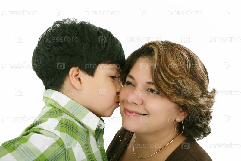 Маленький мальчик целует маму