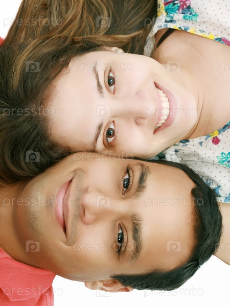 Портрет молодой пары на белом фоне