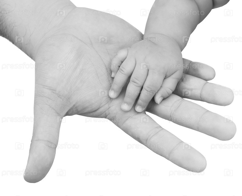 Рука ребенка на ладони отца