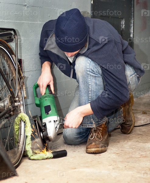 Молодой человек пытается украсть велосипед