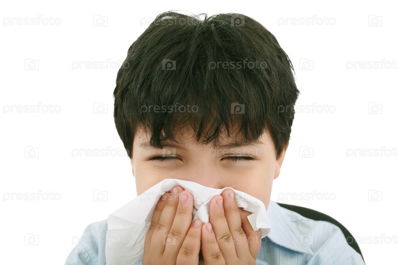 Простуженный мальчик белый фон