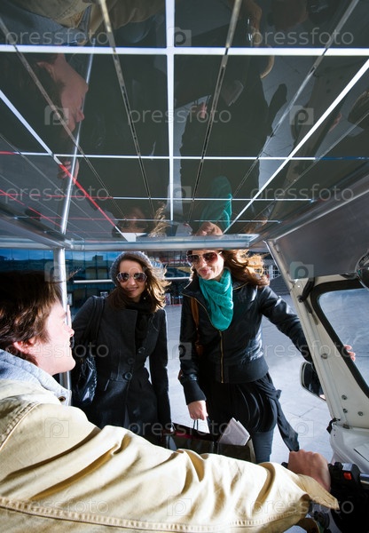 Две женщины разговаривают с водителем