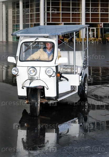 Мужчина в машине на солнечных батареях