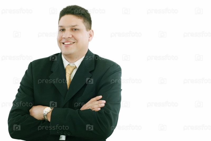 Довольный предприниматель на белом фоне