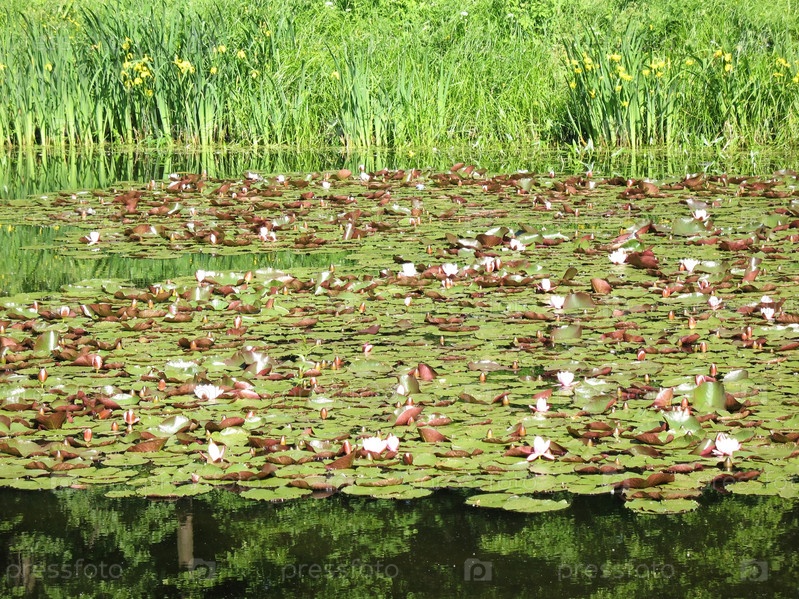 Пруд с растущими белыми кувшинками