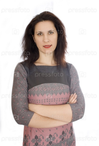 Красивая молодая женщина на белом фоне