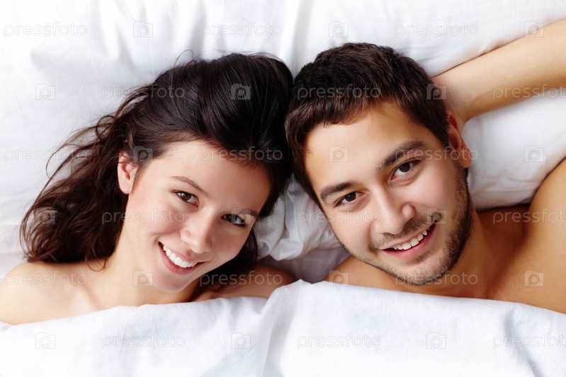 Молодая счастливая пара в постели