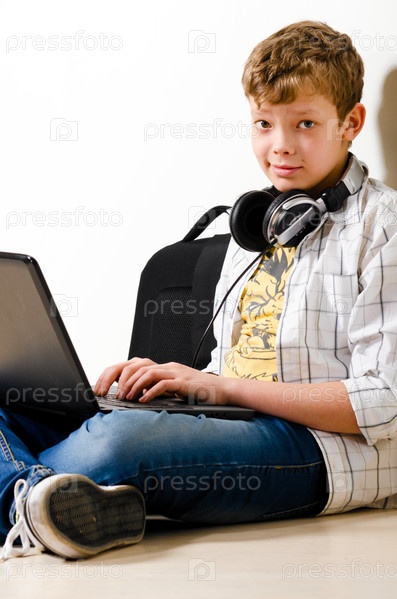Мальчик с ноутбуком в школе