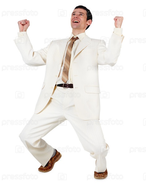 Удовлетворенный успешным молодым бизнесменом, изолированный на белом фоне