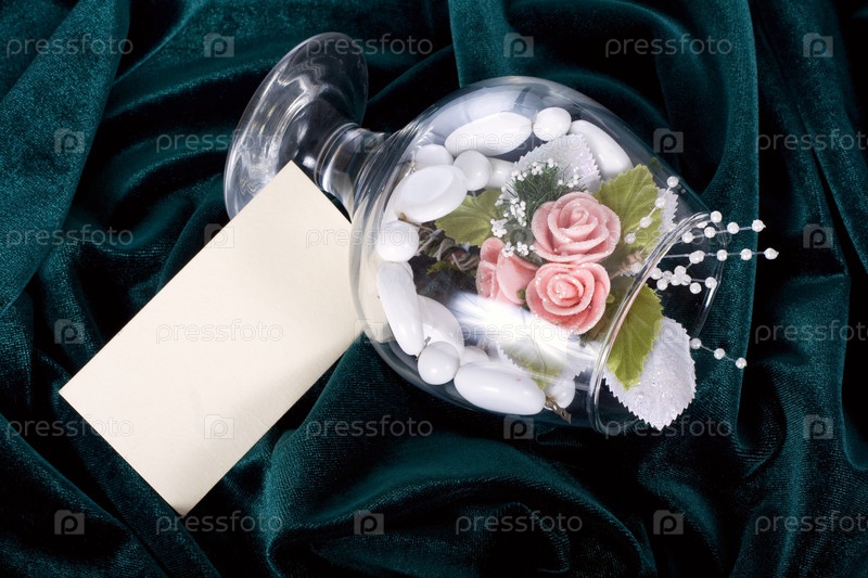 Праздничное украшение с поздравительной открыткой на зеленом фоне