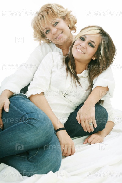 Мать и дочь сидят на полу