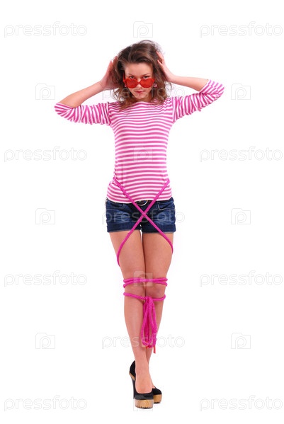 Девушка, обмотанная розовым шнуром