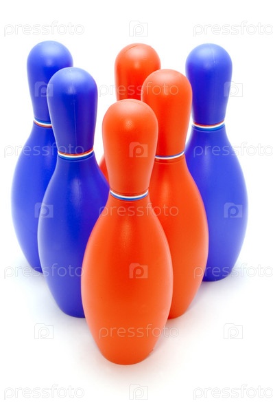 Синие и красные кегли для боулинга