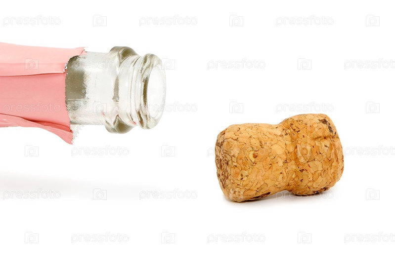 Пробка и горлышко от бытылки на белом фоне