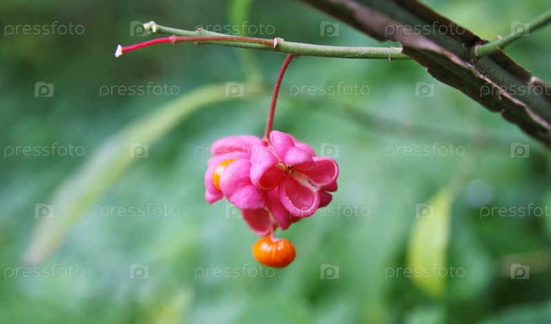 Плоды бересклета бородатого, euonymus verrucosus