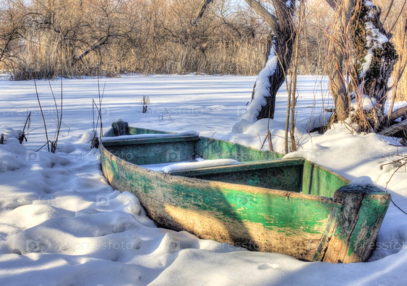 Старая лодка в снегу