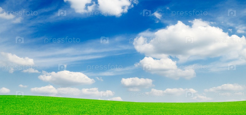 Зеленое поле на фоне голубого неба