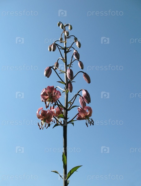 Конечная кисть кудрявой лилии (Lilium martagon), семейства Лилейных, на фоне голубого неба
