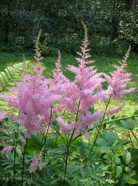 Розовые верхние соцветия астильбы (Astilbe), семейства Камнеломковых