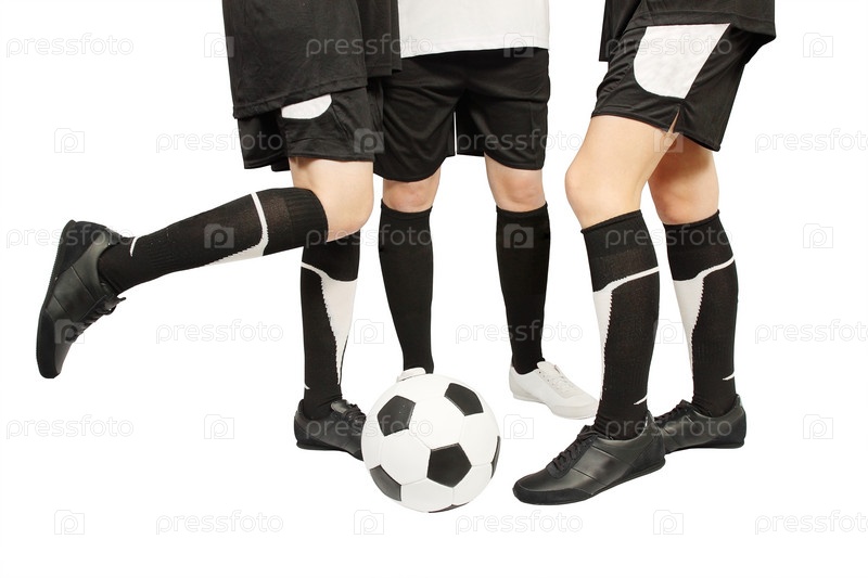 Ноги в гетрах с футбольным мячом