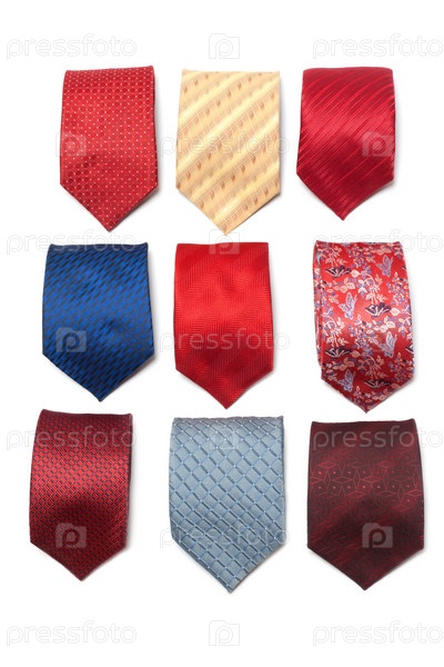 Разноцветные мужские галстуки скручиваются на белом фоне