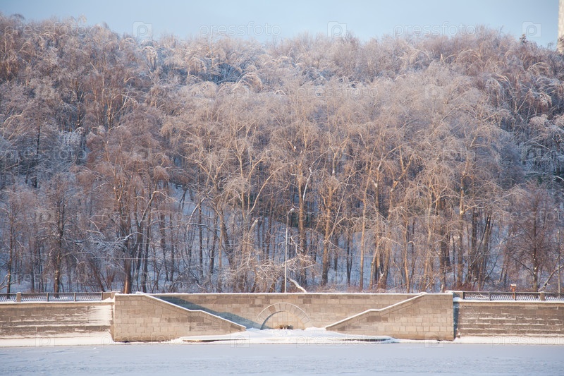 Зимний вид на Лужнецкую набережную Москвы-реки