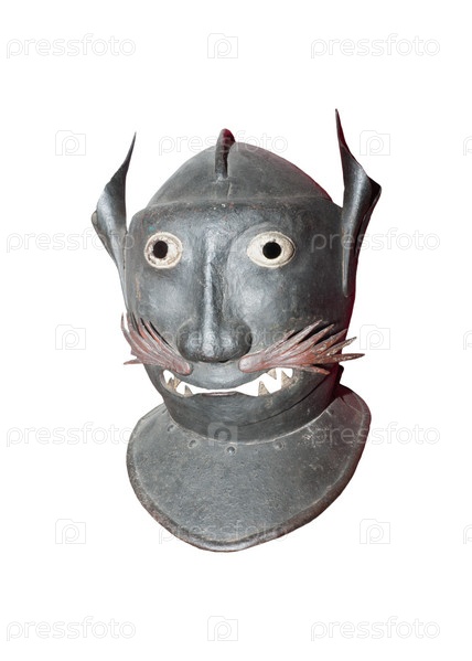Старинная позорная маска на белом фоне