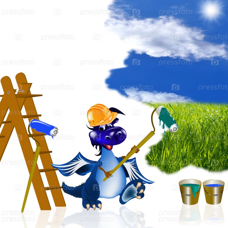 Синий дракон-маляр раскрасит вашу жизнь в цвета природы, концепция