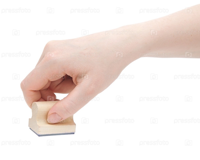 Штамп в руке на белом фоне