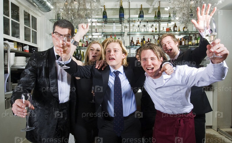 Группа друзей веселится в баре ресторана