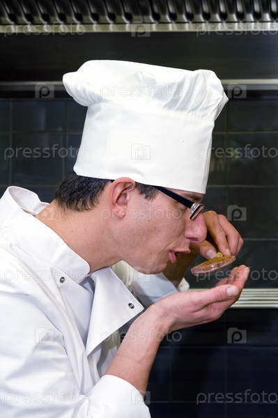 Шеф-повар ставит поднос картофеля в профессиональную духовую печь