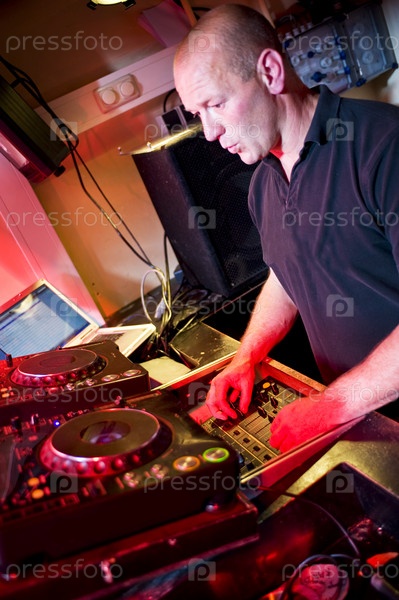Взрослый ди-джей за микшерским пультом