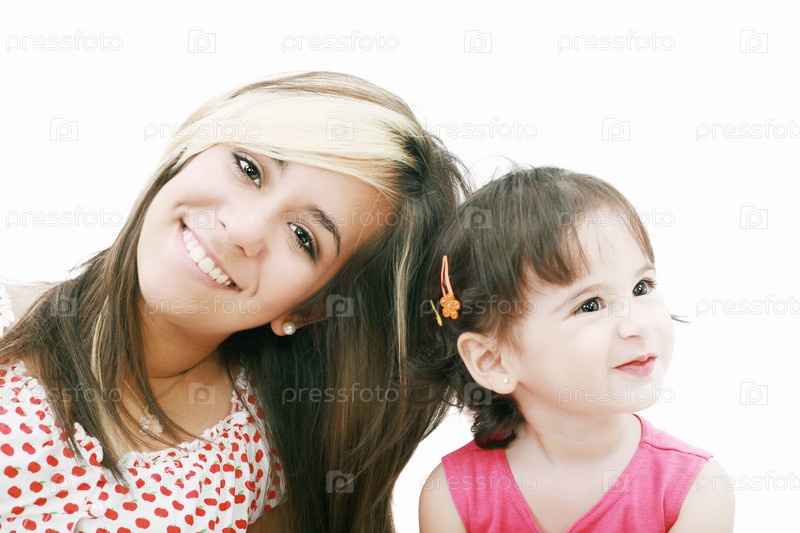 Подросток с маленькой сестрой, изолированный на белом фоне