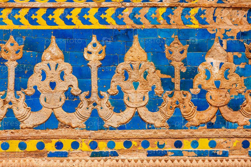 Настенные украшения в могольском стиле в форте Гвалиор, Мадхья-Прадеш, Индия