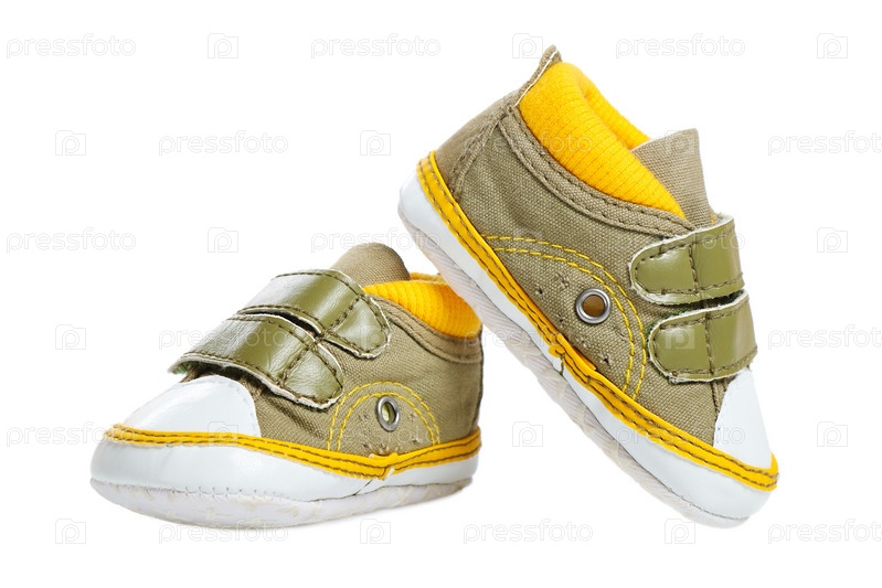 Зеленые детские ботинки, изолированные на белом фоне