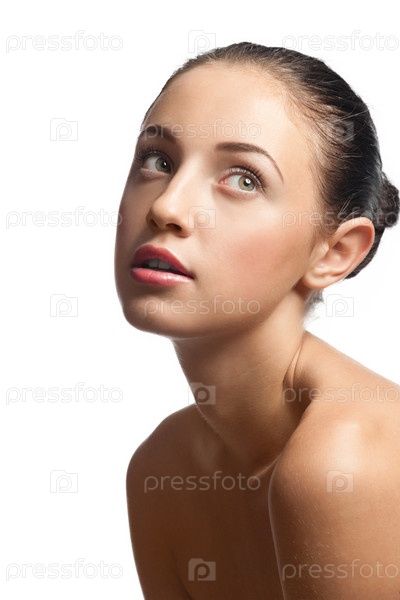 Молодая красивая женщина с естественным макияжем крупным планом, изолированная на белом фоне