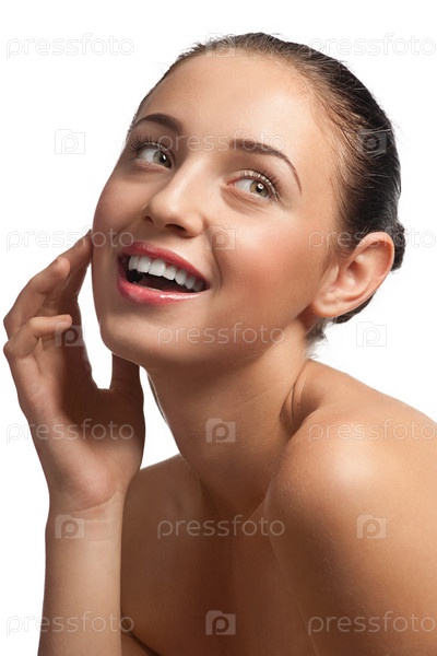 Молодая красивая женщина с естественным макияжем крупным планом, изолированная на белом фоне
