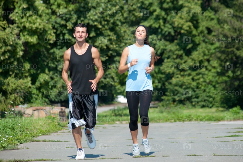 Мужчина и женщина занимаются бегом в парке