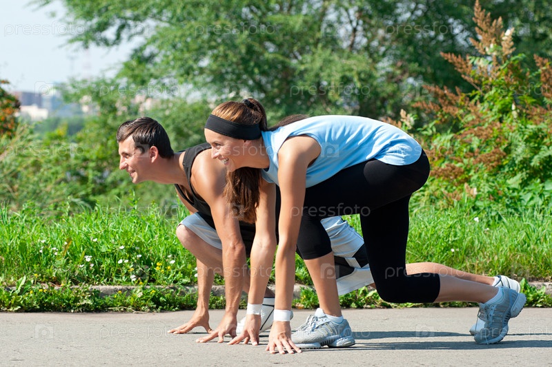 Мужчина и женщина готовы к забегу
