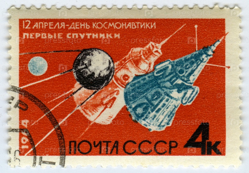 Советская почтовая марка 1964 года с советским космическим спутником