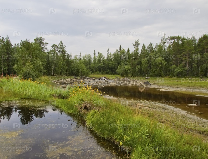 Небольшой залив Белого моря в летнее время. Карелия, Россия