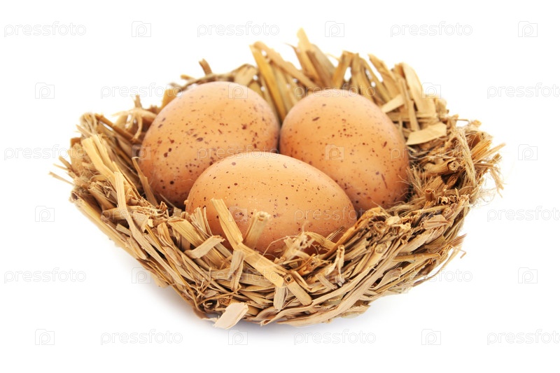Яйца в гнезде, изолированные на белом фоне