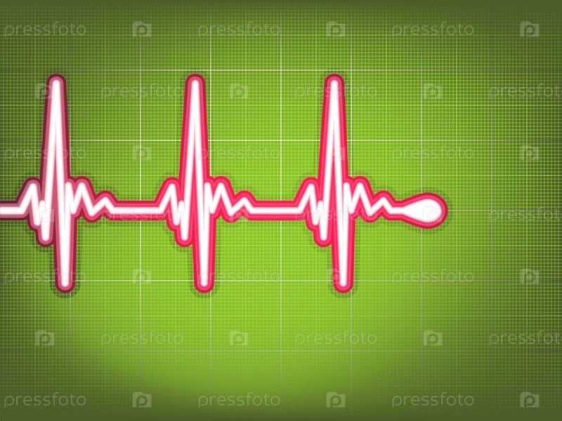 Кардиограмма сердца с тенью на зеленом фоне