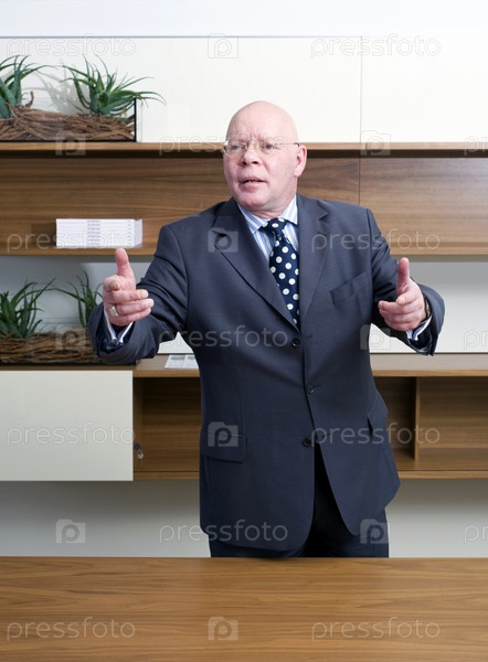 Пожилой начальник сильно жестикулирует для убедительности