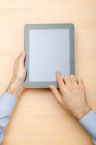 Планшетный компьютер в руках человека