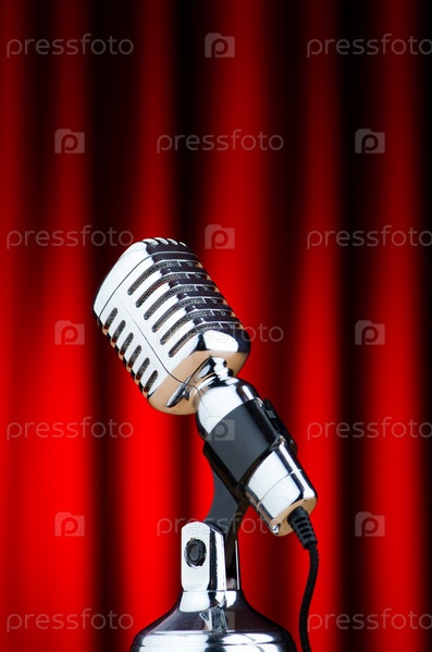 Старинный микрофон на фоне занавеса