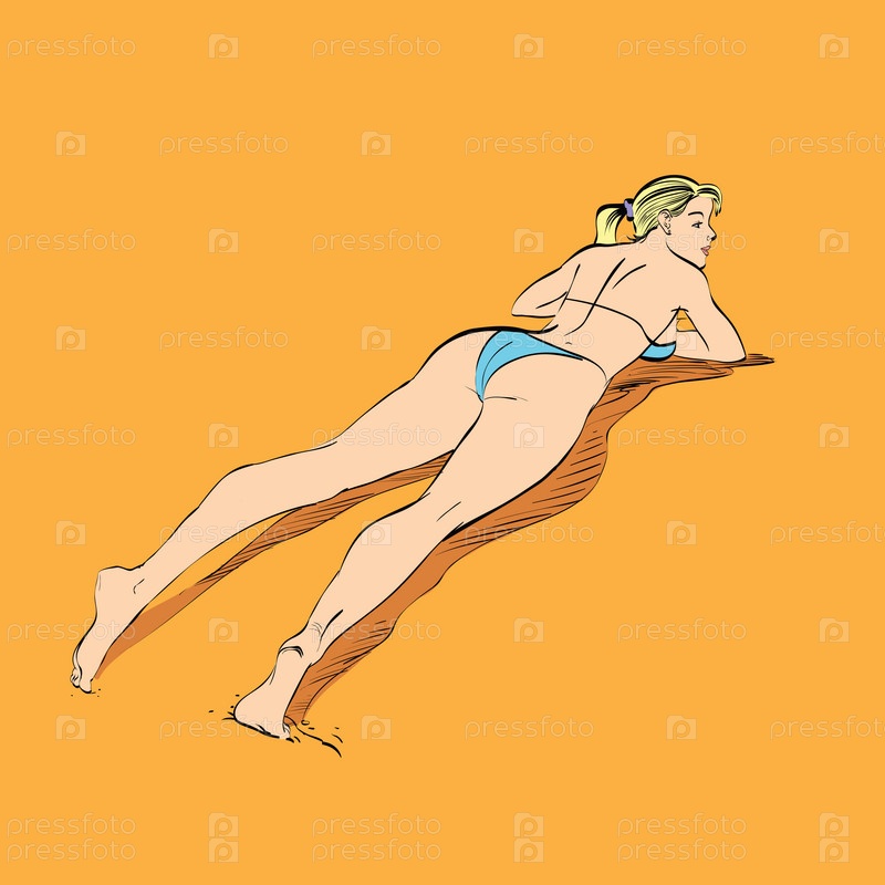 Красивая девушка загорает на пляже